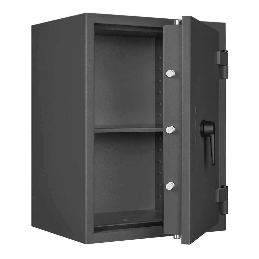 - Höchst widerstandsfähige Türfront und Korpus gegen Angriffe mit mechanischen und thermischen Einbruchwerkzeugen