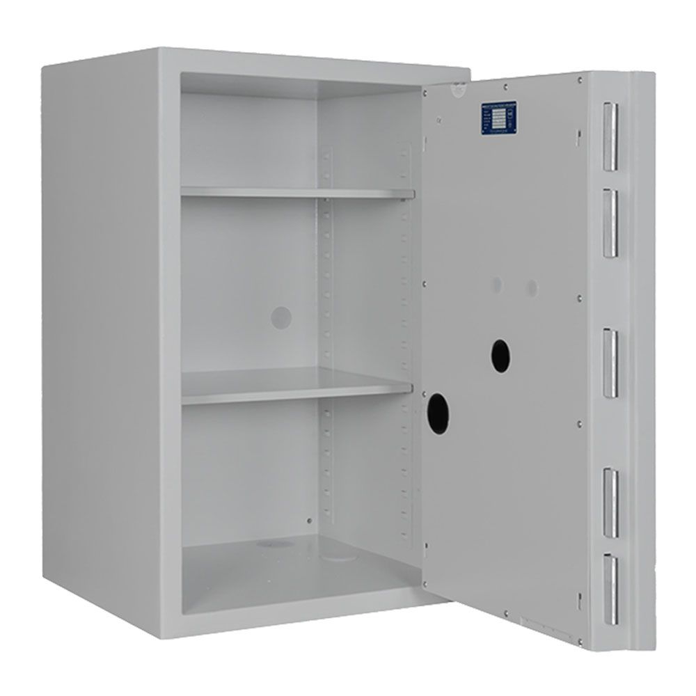 - Höchst widerstandsfähige Türfront und Korpus gegen Angriffe mit mechanischen und thermischen Einbruchwerkzeugen