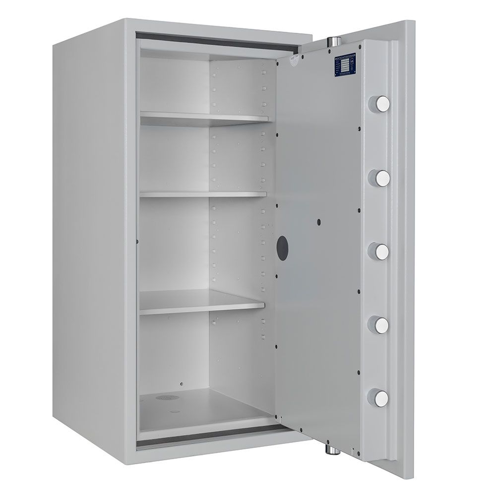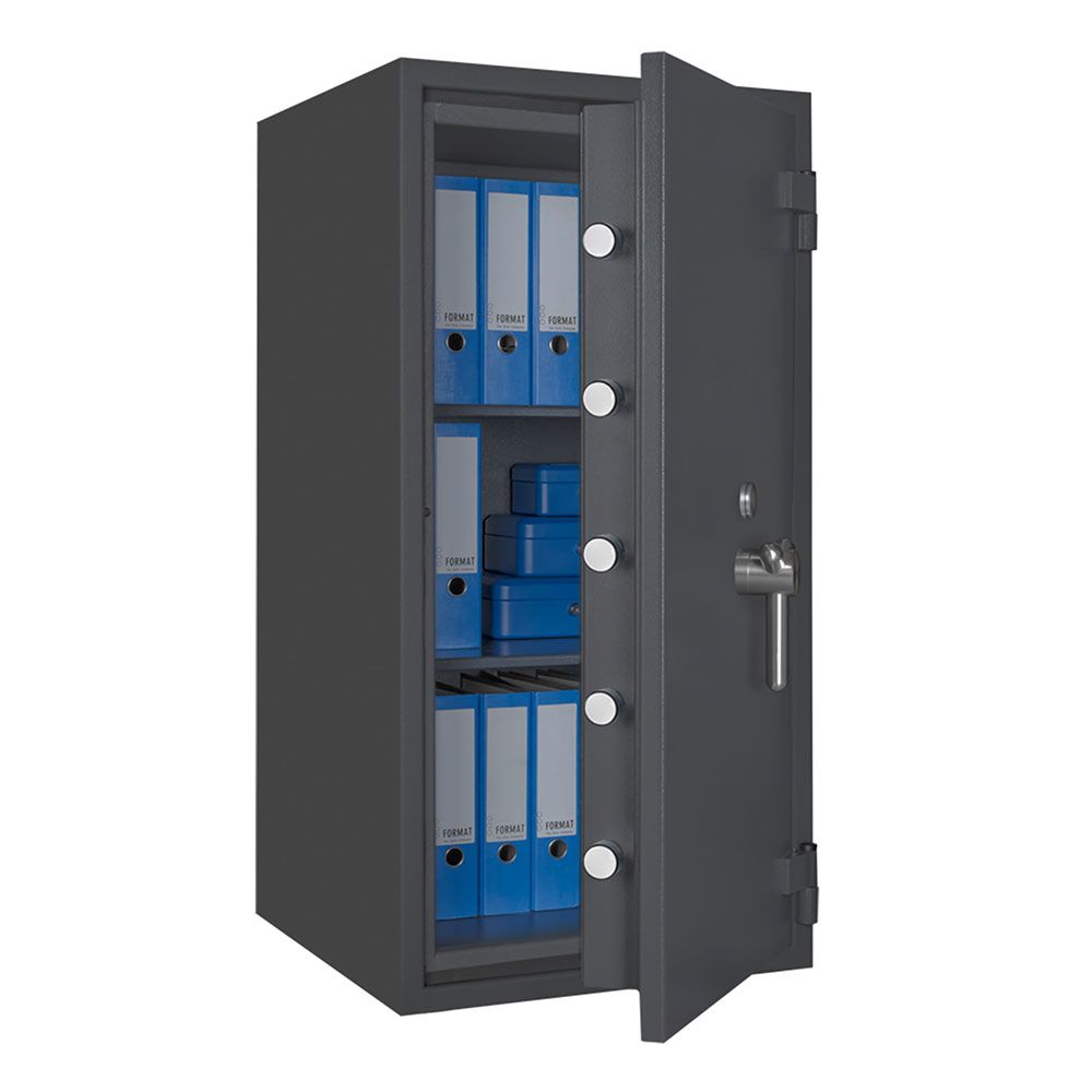 - Höchst widerstandsfähige Türfront und Korpus gegen Angriffe mit mechanischen und thermischen Einbruchwerkzeugen
