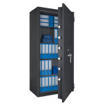 - Höchst widerstandsfähige Türfront und Korpus gegen Angriffe mit mechanischen und thermischen Einbruchwerkzeugen