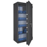 - Höchst widerstandsfähige Türfront und Korpus gegen Angriffe mit mechanischen und thermischen Einbruchwerkzeugen