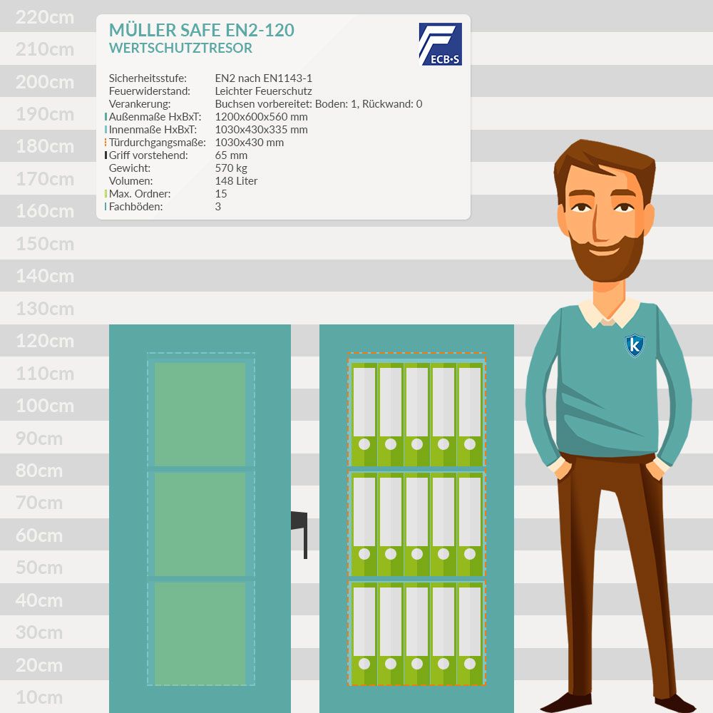 Merkmale: Müller Safe EN2-120 Wertschutztresor mit Elektronikschloss TULOX