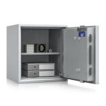 Zertifiziert nach EN 1143-1 von ECB-S und VdS in der Sicherheitsstufe EN3 bietet dieser hochwertige Tresor einen ausgezeichneten Einbruchschutz. Die vierseitige Bolzenverriegelung sowie feststehende Hintergreifbolzen verhindern das gewaltsame Aufbrechen der Tür.