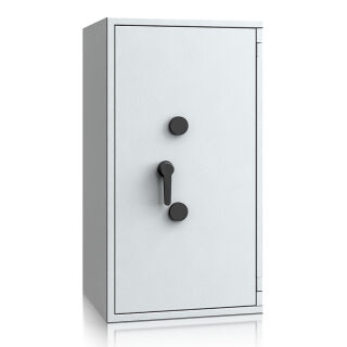 Zertifiziert nach EN 1143-1 von ECB-S und VdS in der Sicherheitsstufe EN4 bietet dieser hochwertige Tresor einen ausgezeichneten Einbruchschutz. Die vierseitige Bolzenverriegelung sowie feststehende Hintergreifbolzen verhindern das gewaltsame Aufbrechen der Tür.