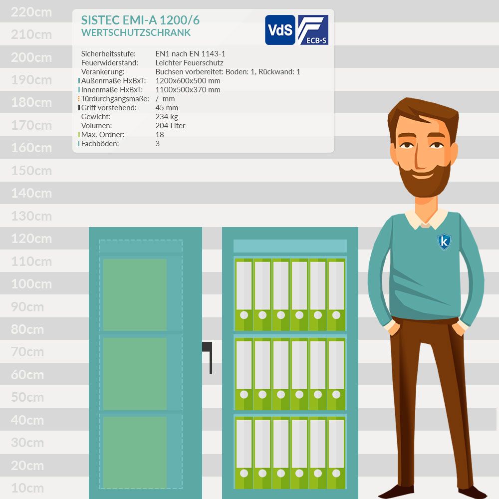 Merkmale: Sistec EMI-A 1200/6 Wertschutzschrank mit Elektronikschloss TULOX