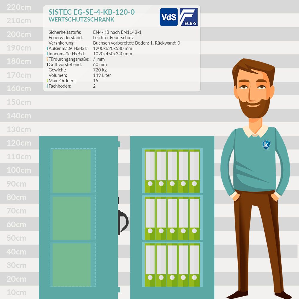 Sistec EUROGUARD-SE4-KB-120-0 Wertschutztresor mit Schlüsselschloss und MZK