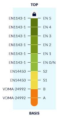 - Zertifiziert nach EN 1300 Class B, VdS 2396 - Klasse 2