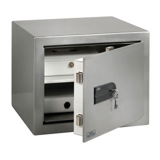 Der Wertschutzschrank Karat MT bietet herausragende Sicherheit für Ihre Wertgegenstände und Dokumente. Dieser Tresor gewährleistet optimalen Einbruchschutz aufgrund der zertifizierten Sicherheitsklasse 0 nach EN 1143-1 und seinem 3-wandigen Korpus und der doppelwandigen Tür. Wertvolle Gegenstände, Unterlagen und Bargeld sind im Karat MT bestens geschützt.