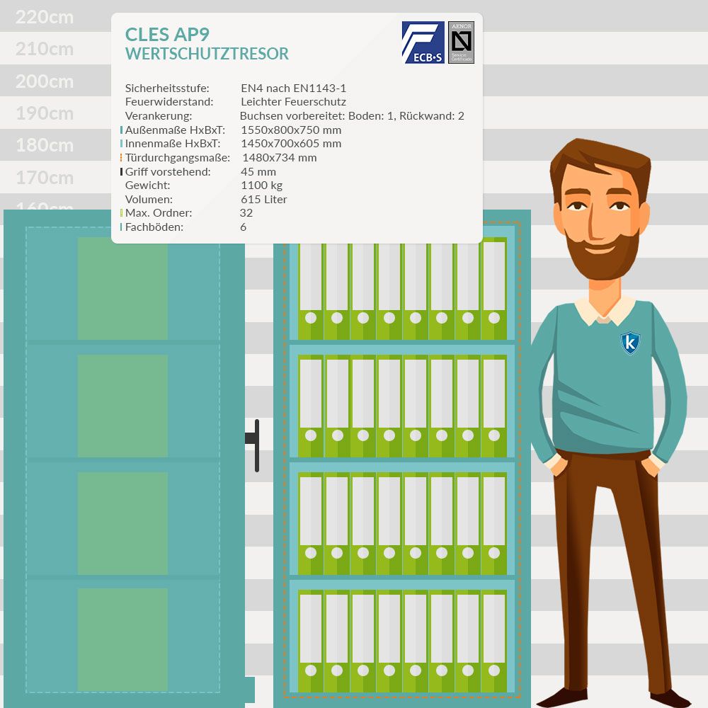 Aufgrund umfangreicher Forschungen in Materialien gewährleistet der CLES protect AP maximalen Widerstand gegen Fremdzugriffe und ist daher sehr effizient bei der Verwahrung von Wertgegenständen, Dokumenten sowie Schusswaffen. Die stabile Bauweise schreckt jeden professionellen Einbrecher ab, hohe Verarbeitungsqualität und extremer Widerstand gegen thermisch und mechanisch wirkende Werkzeuge zeichnen diesen Tresor aus.