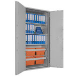 Ideal für die Verwahrung von DIN A4 Ordnern. Der robuste Stahlschrank eignet sich sowohl im Büro wie auch Zuhause (zum Beispiel im Home Office) bestens zur sicheren Verwahrung von kleinen Mengen Akten.