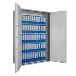 Ideal für die Verwahrung von DIN A4 Ordnern. Der robuste Stahlschrank eignet sich sowohl im Büro wie auch Zuhause (zum Beispiel im Home Office) bestens zur sicheren Verwahrung von kleinen Mengen Akten.