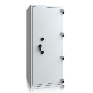 Durch die zertifizierte Sicherheitsstufe EN5 nach EN 1143-1 von ECB-S und VdS bietet dieser hochwertige Tresor einen sehr zuverlässigen Einbruchschutz. Die massive Bauweise, mehrwandiger Korpus und Türe, bieten hohe Sicherheit für Wertgegenstände und Dokumente.