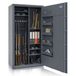 Die Sicherheitsstufe 1 garantiert einen sehr guten Einbruchschutz sowie auch leichten Feuerschutz. Dieser Waffenschrank ist bestens geeignet für eine hohe Anzahl an Langwaffen sowie auch Kurzwaffen und Munition.