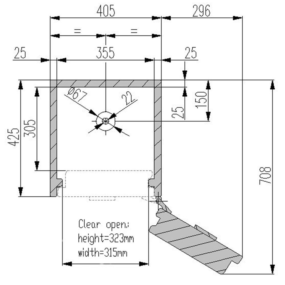 - Griff bei Standardausführung: 015-085: Klappgriff, 095: Hängegriff