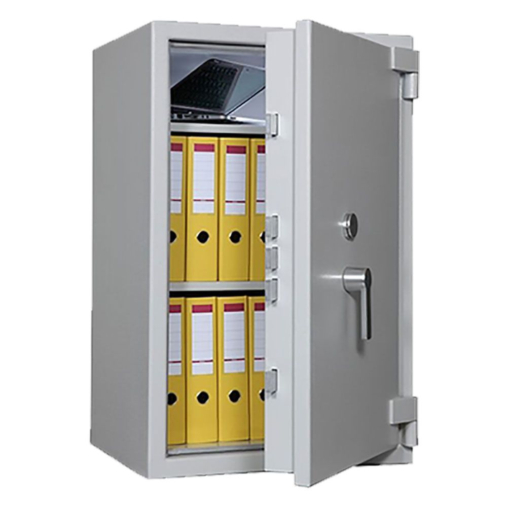 Die Tresore sind mit brandhemmenden Materialien nach DIN 4102 gefüllt, dies schützt Ihre Dokumente und Wertsachen vor Brandeinwirkung. Zusätzlich ist ein dichtschließender Feuerfalz am Gehäuse verbaut, welcher bei Hitzeeinwirkung den Tresor dicht verschließt. Die glatte Ummantelung bietet keine Angriffspunkte und schützt vor dem Abtragen des Tresors, eine extra Starke Verriegelung verhindert gewaltsames Aufbrechen.