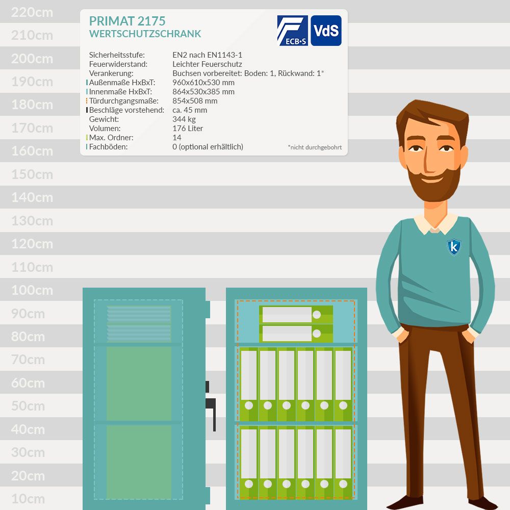 Merkmale: Primat 2175 Wertschutztresor EN2 mit Elektronikschloss TULOX