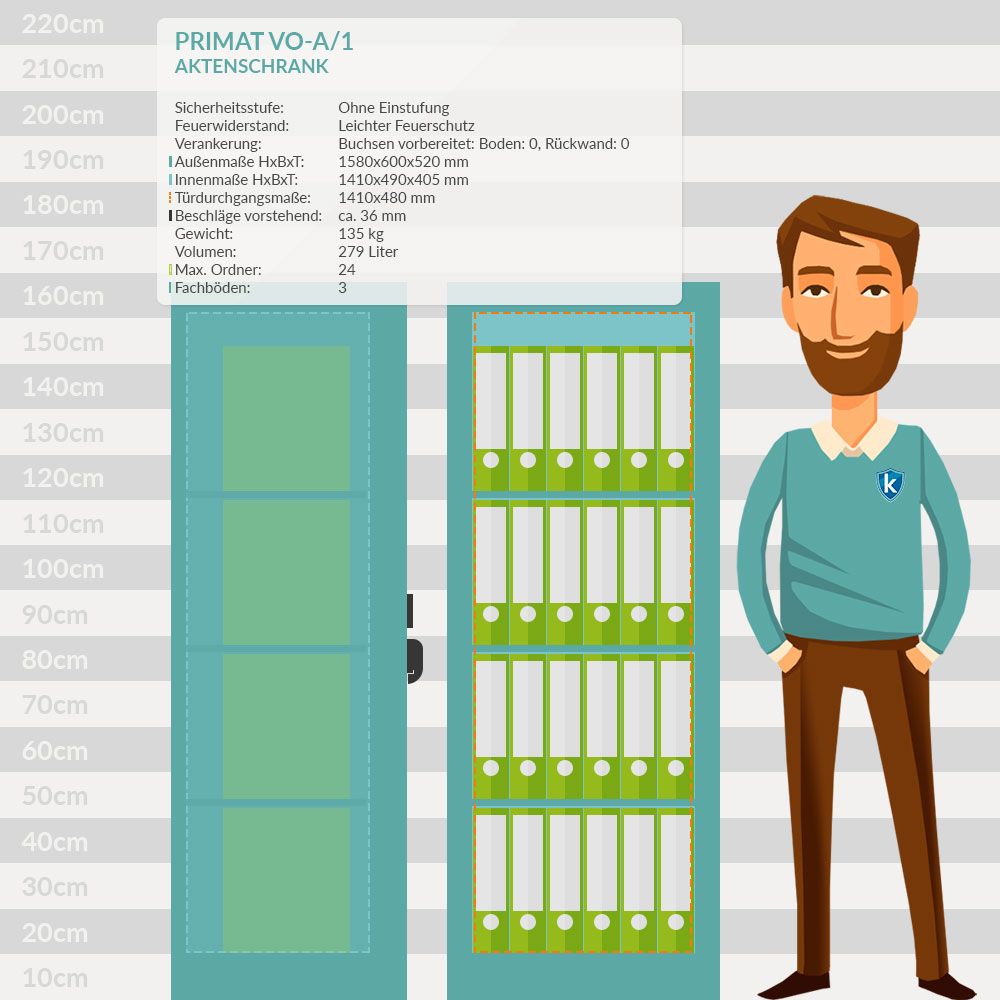 Merkmale: Primat VO-A/1 Feuergeschützter Aktenschrank mit Schlüsselschloss