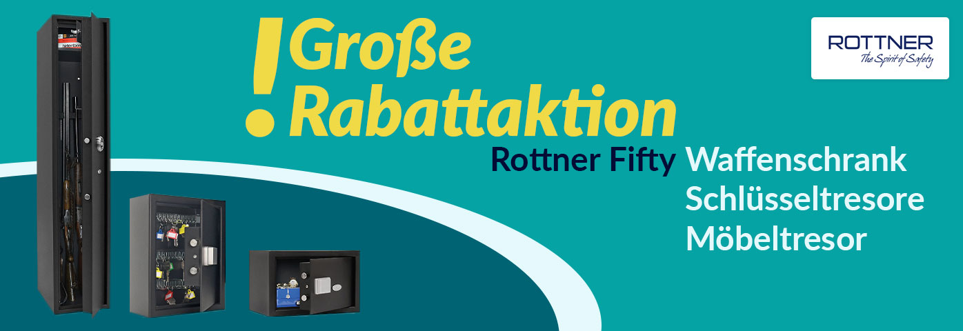 Große RABATTAKTION! Die neuen Rottner Fifty Tresore sind ab sofort zu attraktiven Preisen erhältlich. Der Rottner Fifty ist als Waffenschrank, Schlüsseltresor und Möbeltresor erhältlich!