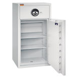 Der DSC ist ein zertifizierter Depositschrank gemäß Widerstandsgrad von D-I nach EN1143-2, geprüft von ECBS. Das Modell bietet ein optimales Preis/Leistungsverhältnis und wurde speziell für den Einsatz in einem Umfeld konzipiert, in dem ein regelmäßiger Bargeldtransfer stattfindet. (z.B. Einzelhandel, Tankstellen). Durch das bohrgeschützte Schloss und die dreiseitige Verriegelung ist dieser Depositschrank optimal gegen Einbrecher geschützt.